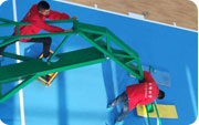 相關(guān)產(chǎn)品 鐵路局羽毛球館PVC地板 南寧四十四中學(xué)校室內(nèi)球館籃球架